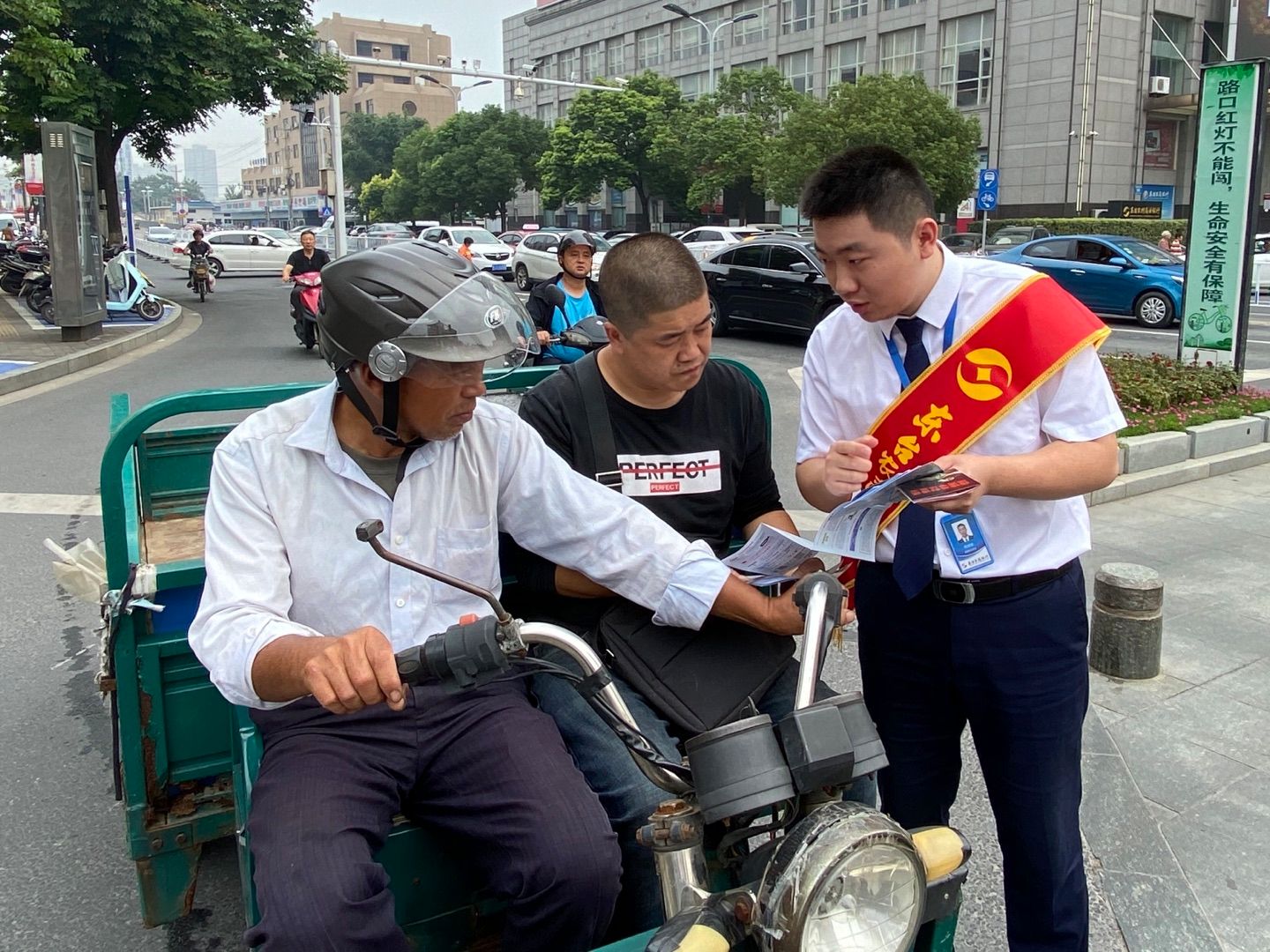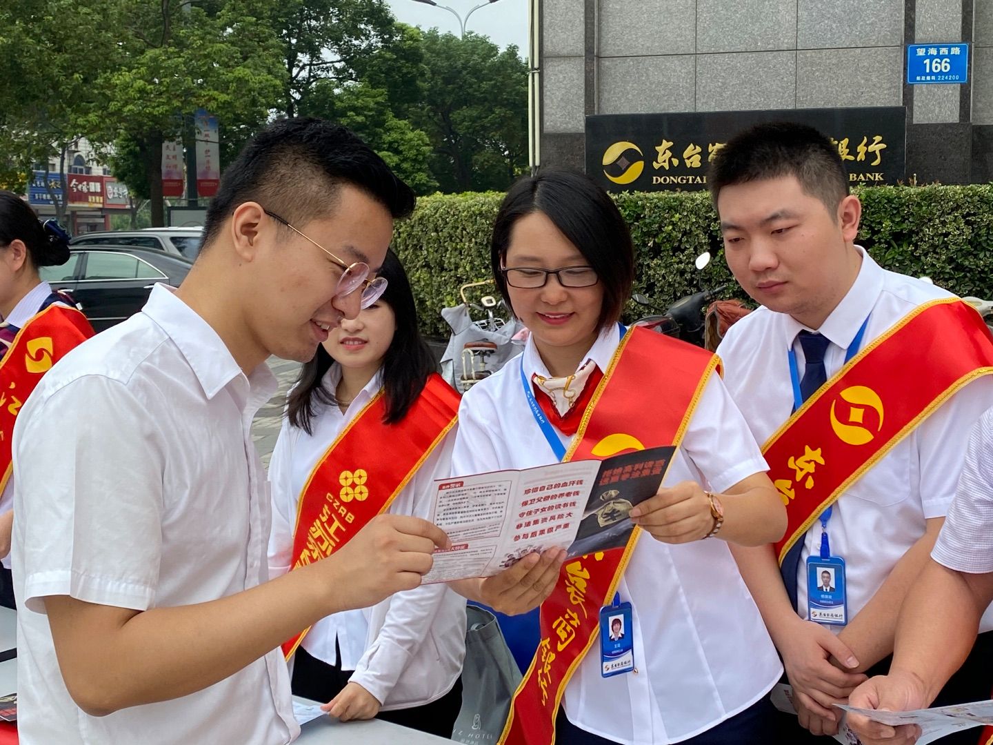 本次活动紧扣“网络安全为人民,网络安全靠人民”的主题,聚焦“规范金融科技创新,营造金融安全环境”相关内容,充分利用“线上+线下”渠道,以展板展示、公众号推文、口头宣讲等方式进行了宣传。活动现场,人民银行东台市支行金融服务二部科穆根俊、杨琳、东台农商银行东亭支行工作人员身披绶带,向来往市民发放宣传折页,讲解金融知识。