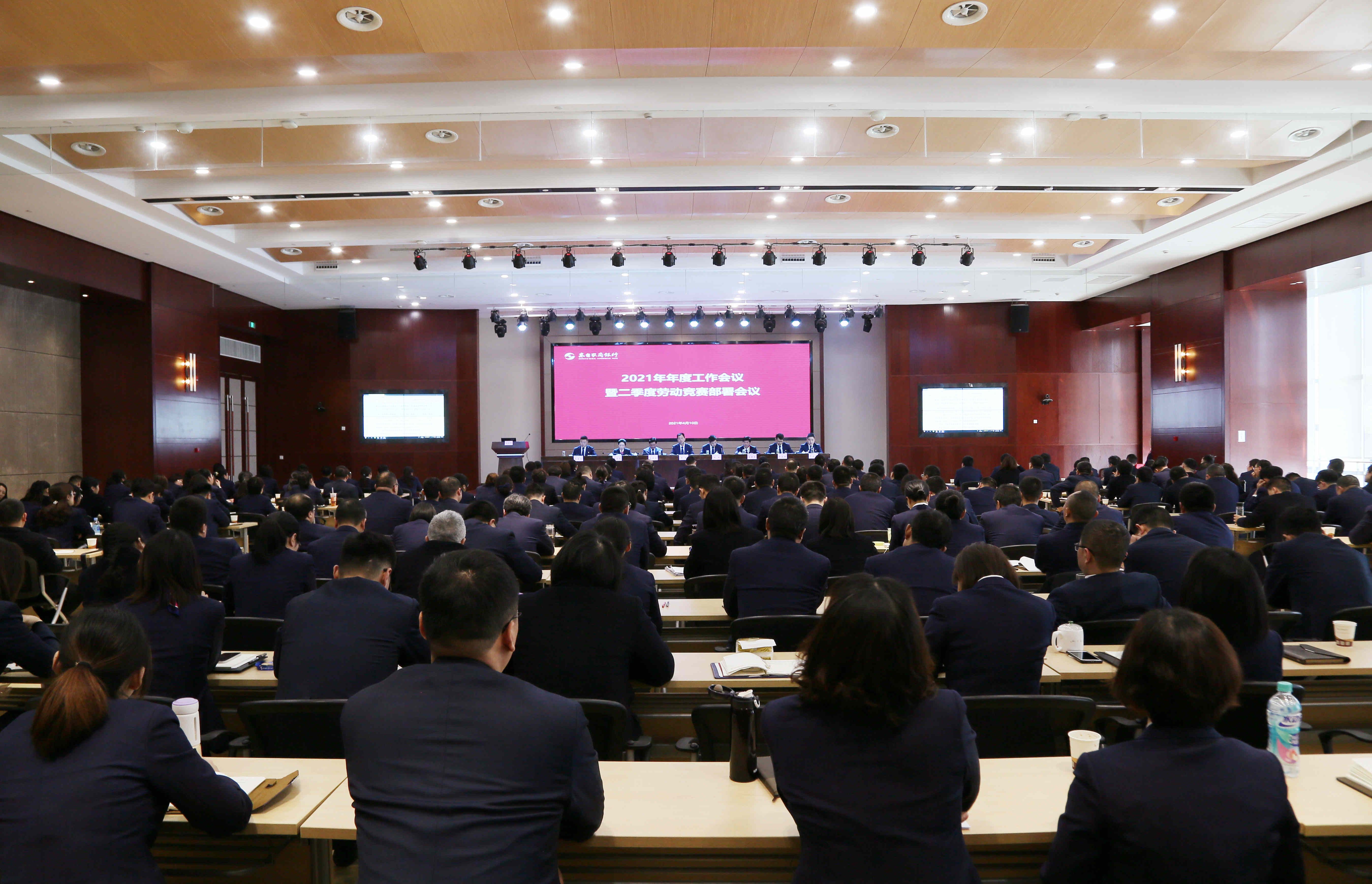 为总结回顾2020年工作成效,科学部署2021年工作重点以及二季度劳动竞赛,4月10日,总行召开2021年年度工作会议暨二季度劳动竞赛部署会议,总行领导班子全体成员,全体中层管理人员、一般管理人员、客户经理及部分获奖代表,共计270人参加会议,会议由副行长苏振东主持。
